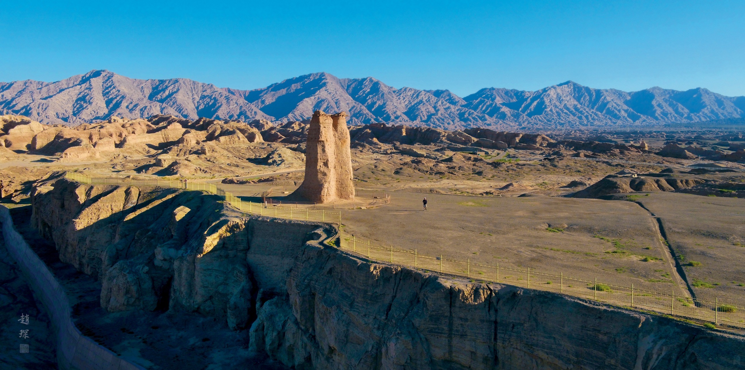 克孜爾尕哈烽燧,位于新疆庫車縣依西哈拉鄉境內卻勒塔格山南麓鹽水溝溝口海拔1200米的沖積臺地上,是漢代出玉門關西行通往古龜茲,疏勒及天山北麓烏孫的交通要道。“克孜爾尕哈”在古突厥語中是“紅色哨卡”的意思,烽燧為夯土結構,層厚12—15米,上部夯層中夾有木骨層,頂部為木坯壘砌。克孜爾尕哈烽燧是古絲綢西路北道上時代最早,規模最大、保存最完好的烽燧遺址,見證了漢唐時期中央王朝對新疆的有效統治,2005年被評為世界文化遺產、是國保單位。長城在1987年被評為世界文化遺產,與克孜爾尕哈烽燧同處這一地區的其他長城資源應被納入世界文化遺產,也應是國寶單位。